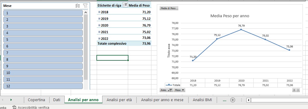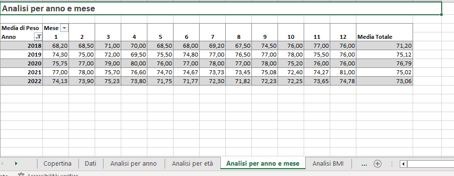 Analisi per anno e mese del peso medio