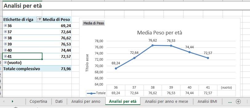 Analisi per età del peso medio