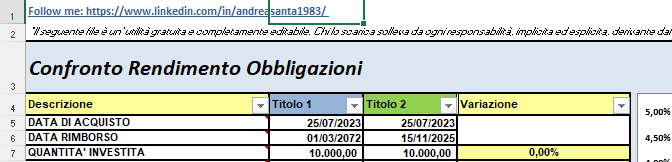 Il foglio funziona in modo nativo con quelle a tasso fisso, ma potenzialmente modificando i dati del foglio “Flussi Interessi” potete sfruttarlo a consuntivo per le obbligazioni a tasso variabile.